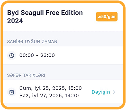 Səfər tarixlərini və vaxtlarını planlarınıza uyğunlaşdıra bilərsiniz.